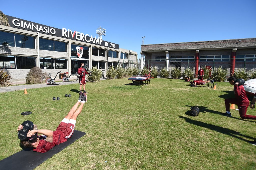 El plantel de River fue hisopado esta mañana en el predio de Ezeiza antes del ensayo táctico del posible equipo para jugar este jueves con San Pablo, en Brasil, por la tercera fecha del Grupo D de la Copa Libertadores.