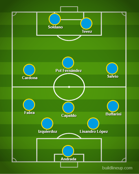 Con Campuzano en el banco de suplentes, las otras dos variantes son los ingresos de Julio Buffarini por Leonardo Jara en el lateral derecho; y el del colombiano Edwin Cardona por Agustín Obando sobre el sector izquierdo del ataque.