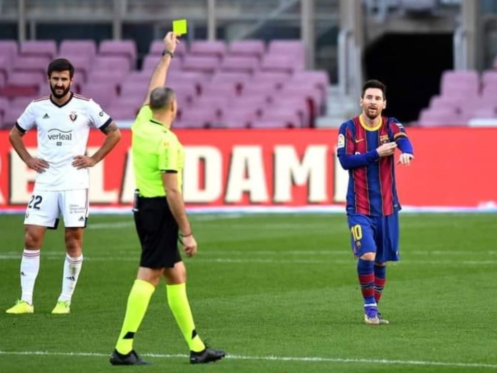 Messi levantó su mirada hacia el cielo, envió un beso al astro y luego fue amonestado por el árbitro Mateu Lahoz ajustado a reglamento (artículo 111 del actual Código Disciplinario).