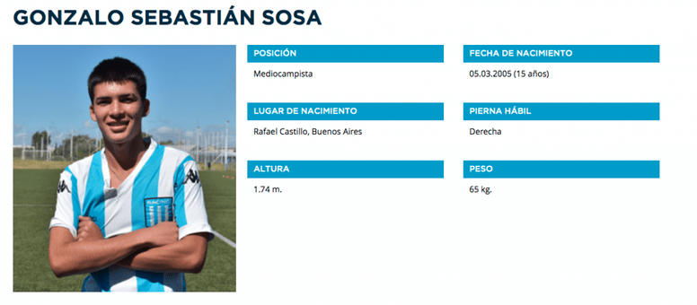 Gonzalo Sosa, futbolista de la categoría 2005, se desempeña como mediocampista ofensivo y según el diario madrileño «AS», el Barcelona habría enviado «emisarios» a la Argentina para seguir de cerca la evolución del jugador de Racing.