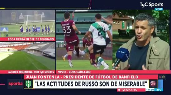 «Repudiamos la actitud de Russo, ningún hincha o socio de Lanús se debe sentir representado con sus dirigentes», apuntó Fontenla en declaraciones a TyC Sports desde el predio de Luis Guillón.