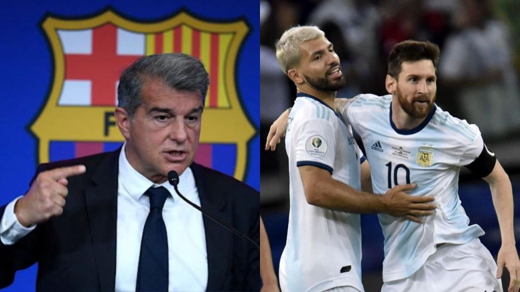 El presidente de Barcelona, Joan Laporta, reveló hoy que Sergio Agüero, uno de los refuerzos para la próxima temporada, «está ayudando» en la negociación por la renovación del contrato de Lionel Messi.