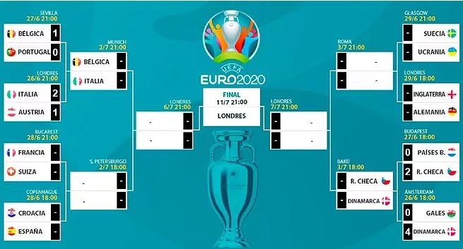 El rival de Bélgica en cuartos de final será Italia que el sábado venció en tiempo suplementario a Austria por 2 a 1.