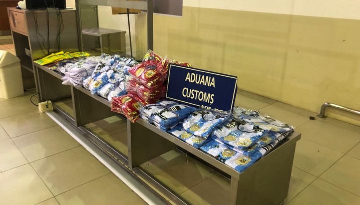 La Aduana, en un comunicado, precisó que en total detectaron 302 prendas deportivas nuevas (camisetas de fútbol de Argentina, Brasil, Polonia y Barcelona), con una valuación de mercado estimada en alrededor de $6 millones.