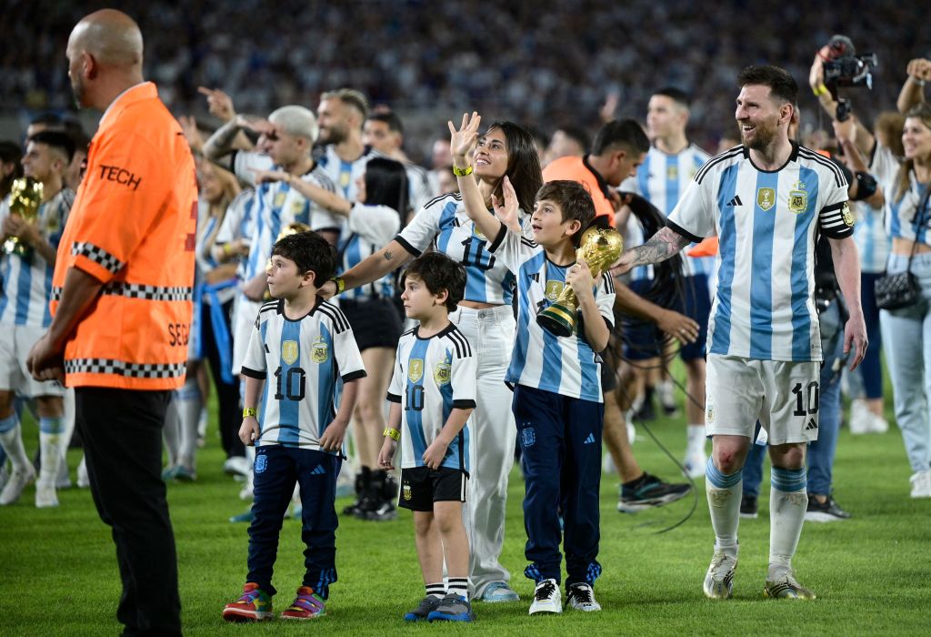 Después de un repaso de las mejores imágenes del Mundial, Messi volvió a levantar la Copa del Mundo, como en Lusail pero en el Monumental con su familia y ante la gente que idolatrará por siempre.